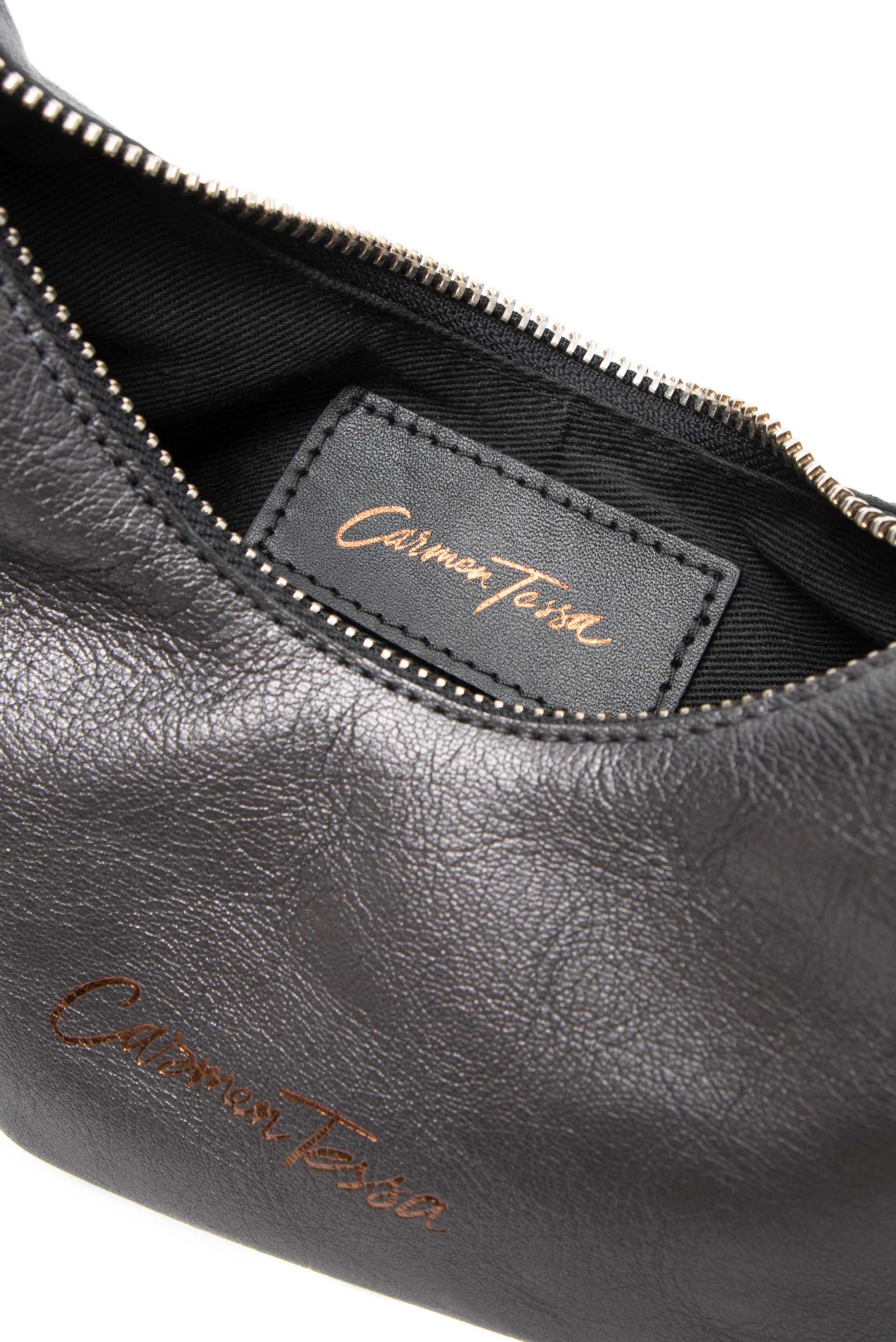 .Está confeccionado en piel vacuna y de fabricación y diseño en España. Consta de un único compartimento y se cierra mediante cierre de cremallera. Se puede llevar a modo clutch o de mano. Incluye bolsa protectora Carmen Tessa.